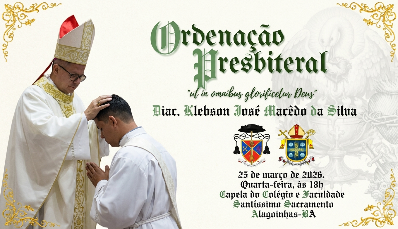 A Diocese de Alagoinhas convida toda a comunidade de fiéis, clero e religiosos para celebrar um momento de profunda renovação e fé: a Ordenação Presbiteral do Diácono Klebson José Macêdo da Silva. Sob o